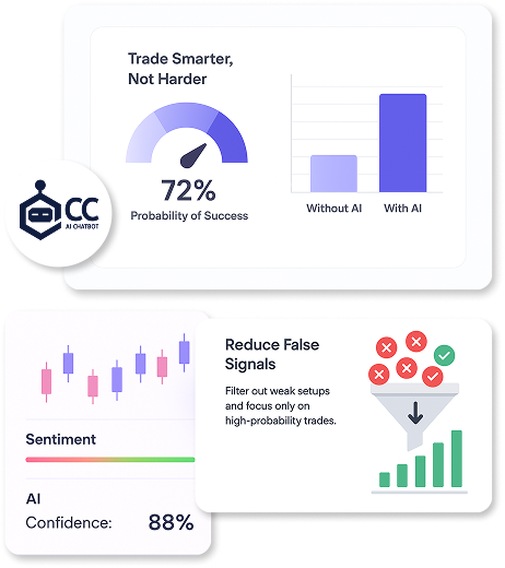 Combines technical and sentiment data into one unified model, producing a simple probability figure for every trade idea.